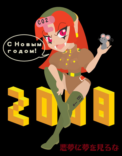 イマジン年賀状だけでヒィヒィ言ってたのに、描き上げたとたん「やっぱりペチ子も描きてぇ!」となり、突発的に描き始めた……ものの、年が明けてもなかなか完成しなかったという。 「とにかく描きたいから描くんじゃあ!」な勢いで描いたものなので、描いていて楽しかったです。
